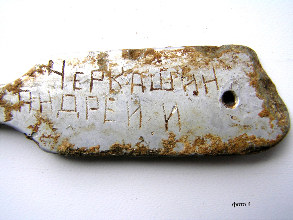 Как позже оказалось, это был не единственный медальон в захоронении. Другой медальон был накануне найден грабителями и как предмет, не имеющий материальной ценности, передан человеку, долгие годы занимающемуся установлением судеб воинов, погибших и пропавших без вести в годы войны, и поиском их родственников. И здесь вкладыш сохранился, но текст практически полностью угас (фото 2).