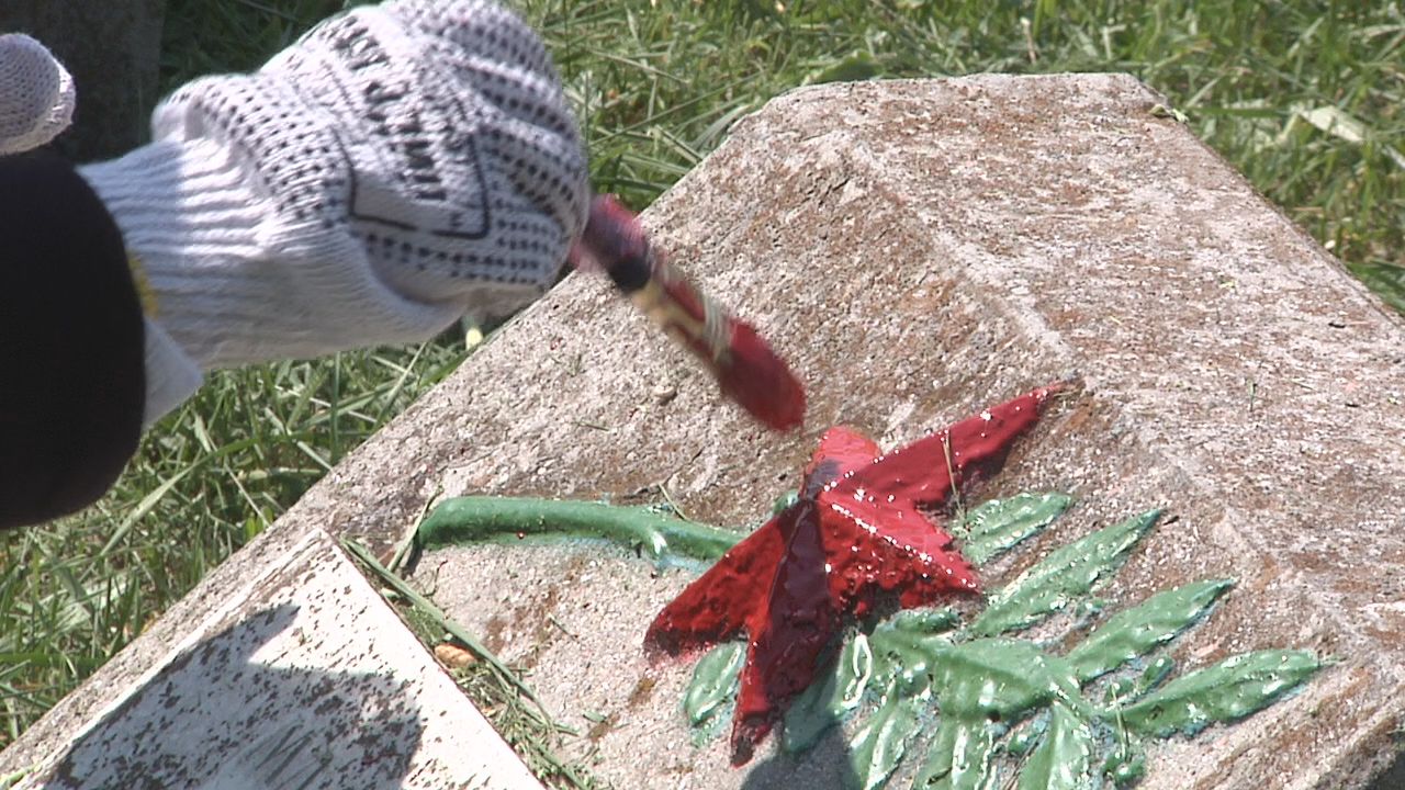 На субботник собрались все, кому не безразлична народная память. Школьники убрали территорию и посадили цветы возле памятника, а студенты Симферопольского художественного училища подкрасили красные звезды на надгробиях. Депутат Ольга Ковитиди сама взяла в руки кисть и работала наравне со всеми.