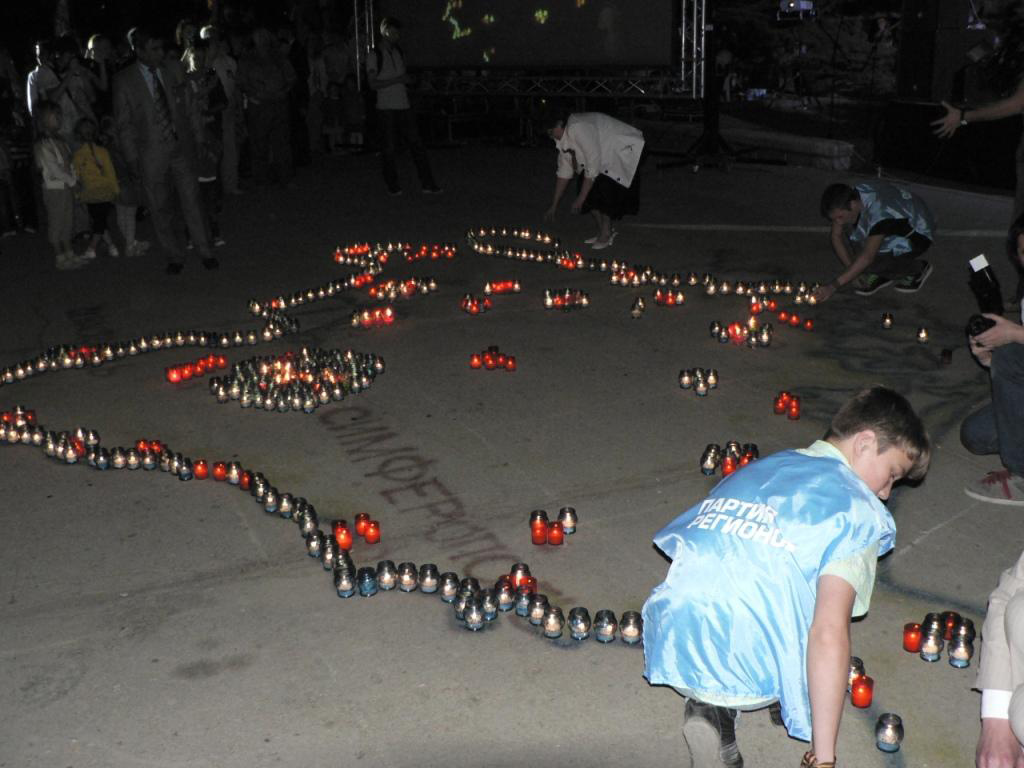 Организаторами выступили партия Регионов и председатель Совета министров автономии Анатолий Могилев. В рамках акции власти, симферопольцы и гости города, выложили на огромной карте Крыма лампадки со свечами в память о героях, сражавшихся в годы Великой Отечественной войны. Специально для этого, был привезен огонь мемориалов Вечного огня городов-героев Севастополя и Керчи. В этих городах состоялись митинги, торжественное зажжение, после чего, автоколонной огонь был доставлен к нам, в крымскую столицу.