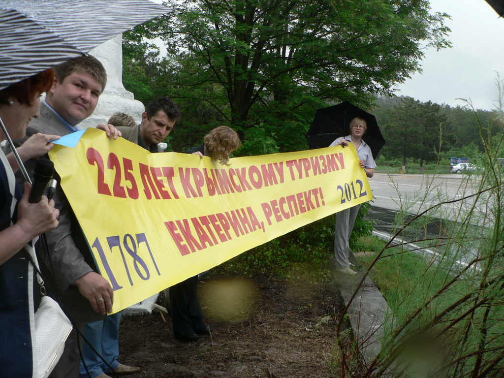 В конце мероприятия, собравшиеся развернули огромный плакат, с забавной надписью: «225 лет крымскому туризму, Екатерина, респект!».