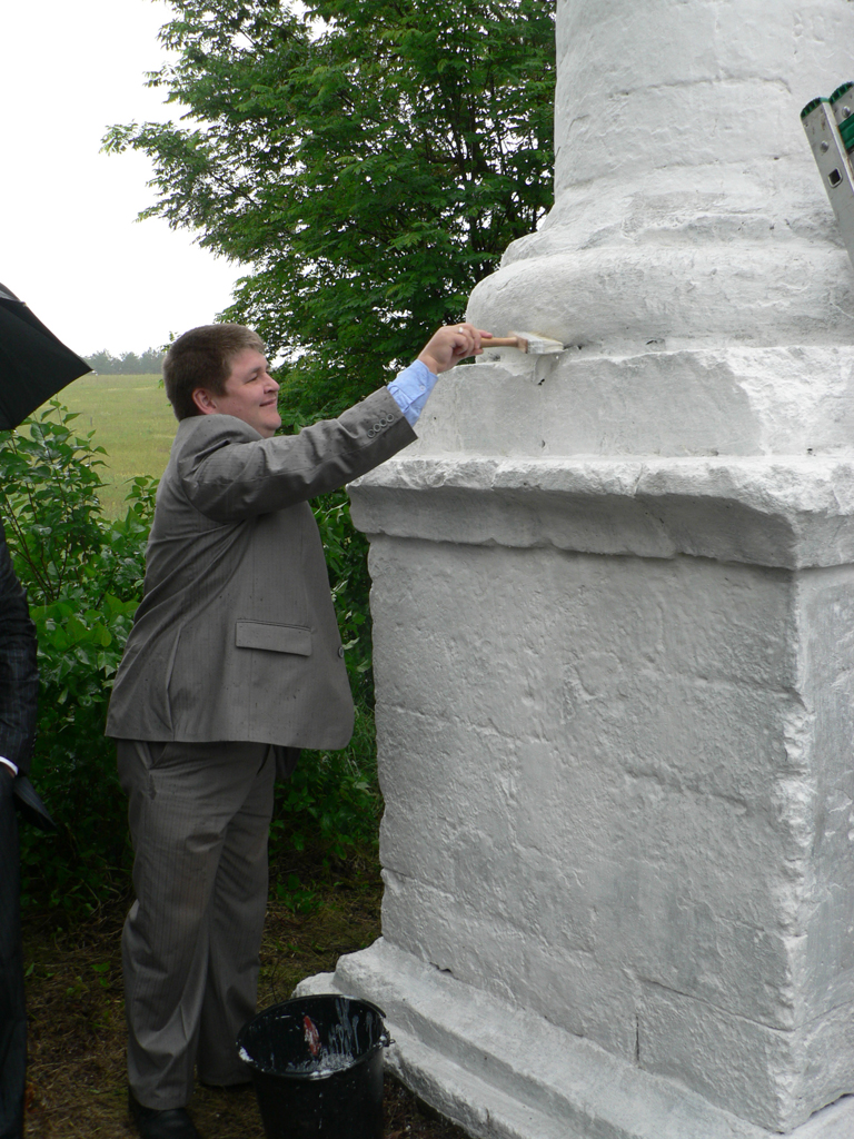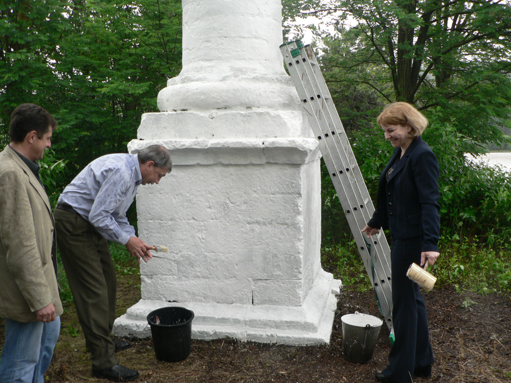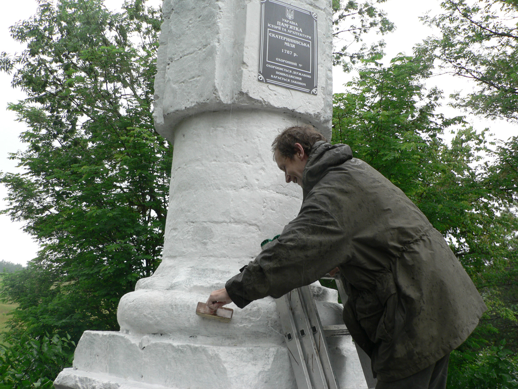 Несмотря на сильный дождь, здесь, в Бахчисарайском районе было действительно оживленно. Каждый из присутствующих, кажется, нашел себе занятие по душе. Министр курортов и туризма АРК Александр Лиев, журналисты и общественные деятели белили «Екатерининскую милю», председатель Рескомитета АРК по охране культурного наследия Лариса Опанасюк стригла кусты вокруг нее, а Председатель Постоянной комиссии Верховной Рады АРК по культуре Сергей Павлович Цеков устанавливал вверху табличку, говорящую о том, что архитектурный памятник «Екатерининская миля» строго охраняется законом и государством.