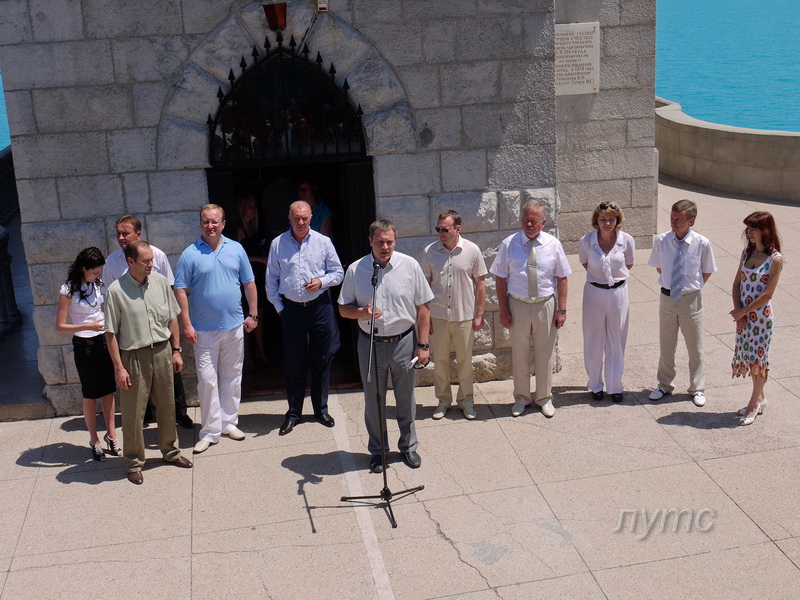 Константин Бахарев, выступая перед собравшимися, напомнил, что до недавнего времени существовали проблемы с доступностью и форматом использования «Ласточкиного гнезда» как уникального объекта архитектуры. «Здорово, что в год 100-летия замка совместными усилиями республиканских властей и властей Ялты нам удалось эти проблемы решить, что позволяет здесь проводить самые разные мероприятия», – отметил член президиума.