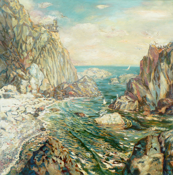 картинах-сновидениях художника. Зритель, то смотрит снизу на замок «Ласточкино
