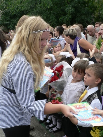 Представители крымской власти подарили детям 15 компьютеров, спортивный инвентарь и книги. А лучшие ученики и учителя гимназии были отмечены грамотами и дипломами.  «Первое сентября - начало осени, День знаний. День знаменателен тем, что сегодня звучит на этой линейке двухсотый юбилейный звонок. Мне хочется, чтобы те дети, которые стоят на этой площади, своей учебой, своим трудом и отношением друг к другу укрепляли Родину и свою семью. Я с удовольствием передаю всем поздравление от Председателя Совета министров АРК Анатолия Могилева», – сказала Виталина Дзоз.