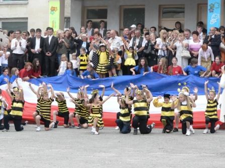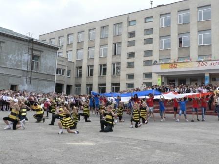 По традиции в конце мероприятия был поднят гимназический флаг и прозвучал первый в новом учебном году звонок.