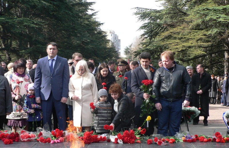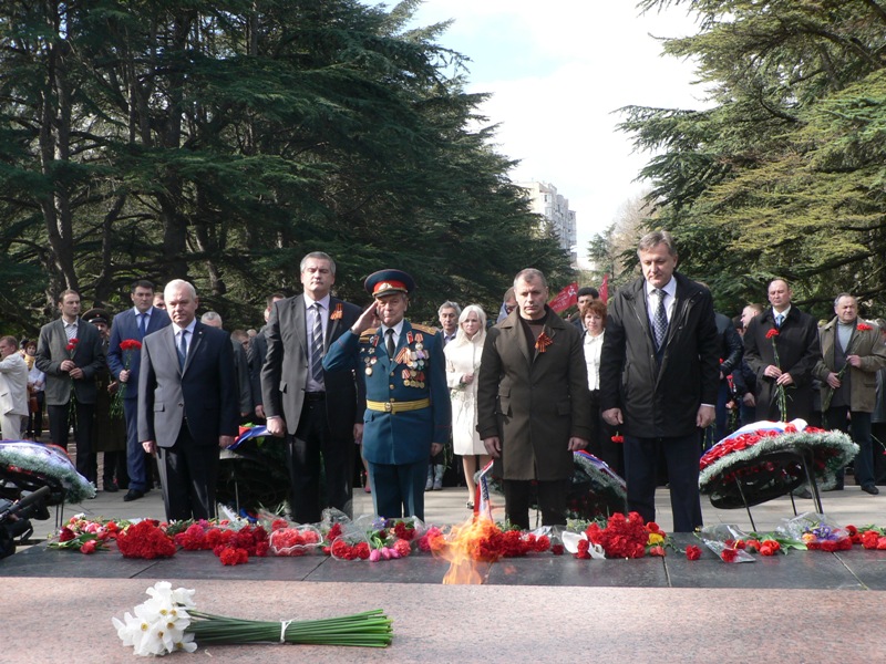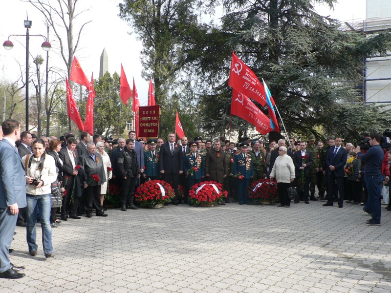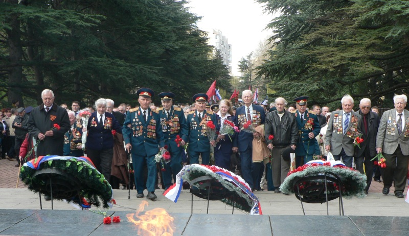 В воскресенье, 13 апреля, состоялось торжественное возложение цветов и венков в сквере Победы к памятнику-танку «Т-34», а также праздничное шествие колонны ветеранов Великой Отечественной войны, руководства Крыма и горожан. Участники шествия возложили под звуки оркестра корзины с цветами к Вечному огню на могиле Неизвестного солдата и почтили память погибших освободителей.