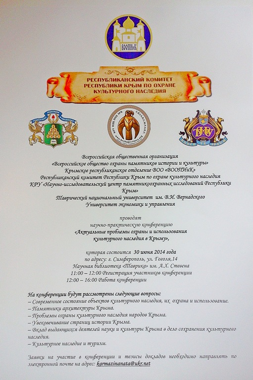30 июня в Симферополе в библиотеке «Таврика» им. А.Х. Стевена состоится научно-практическая конференция «Актуальные проблемы охраны и использования культурного наследия в Крыму».