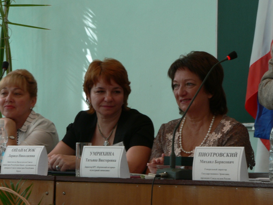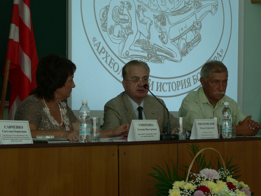 В рамках работы конференции на заседании круглого стола, под председательством генерального директора Государственного Эрмитажа, президента Союза музеев России Михаила Пиотровского, были обсуждены вопросы и проблемы музейного дела, археологии Крыма, большое внимание было уделено вопросам законодательства в области охраны культурного наследия. В ходе выездного заседания на античное городище Нимфей ученые не только обсудили «Актуальные проблемы сохранения, научного исследования и мезеефикации древних городищ», но и смогли увидеть первый шаг музеефикации пропилей по проекту, утвержденному Госкомитетом.