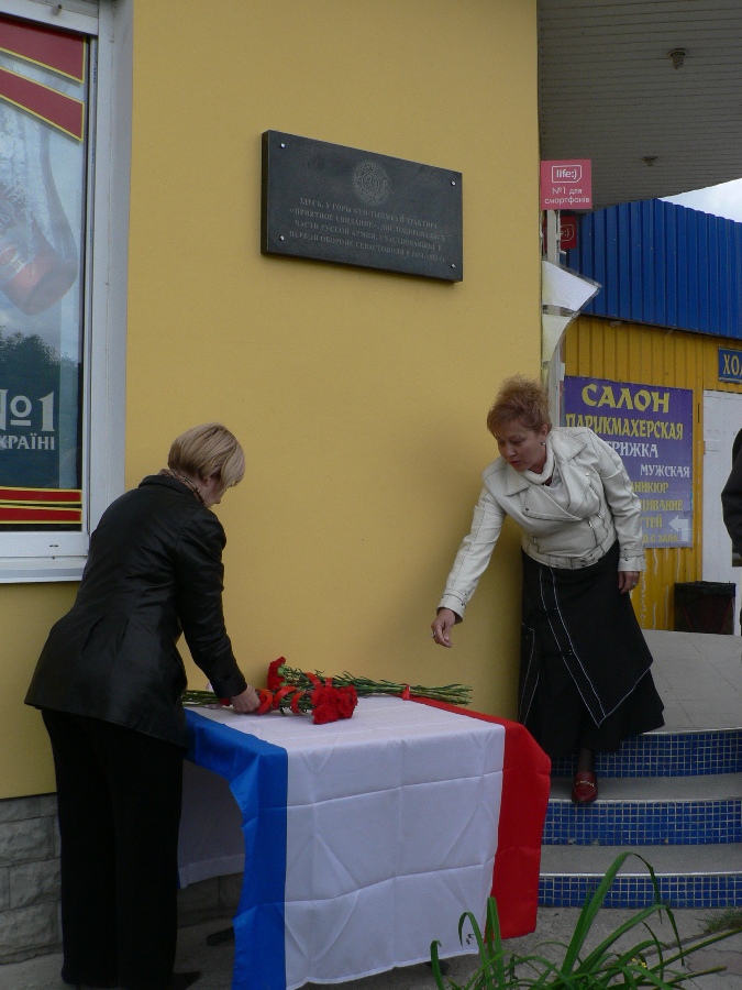 В Бахчисарайском районе открыта мемориальная доска в память о воинах Крымской войны В соответствии с постановлением Государственного Совета Республики Крым от 08.08.2014 № 2435-6/14 «О внесении изменений в Постановление Верховного Совета Крыма от 21 ноября 1996 года № 982-1 «О Дне памяти воинов, павших в Крымской войне 1853 – 1856 годов, и мероприятиях по сохранению, восстановлению, содержанию и охране захоронений, памятников и памятных мест, связанных с событиями этой войны», распоряжением Совета министров Республики Крым от 02.09.2014 № 862-р «О мероприятиях, связанных с Днем памяти воинов, павших в Крымской войне 1853 – 1856 годов», протоколом от 29 августа 2014 года заседания Организационного комитета по увековечению памяти воинов, павших в Крымской войне 1853-1856 годов, планом подготовки и проведения мероприятий, связанных с Днем памяти воинов, павших в Крымской войне 1853 – 1856 годов, Государственный комитет по охране культурного наследия Республики Крым установил на здании магазина в с. Приятное Свидание Бахчисарайского района (на трассе Симферополь – Бахчисарай) мемориальную доску с текстом: