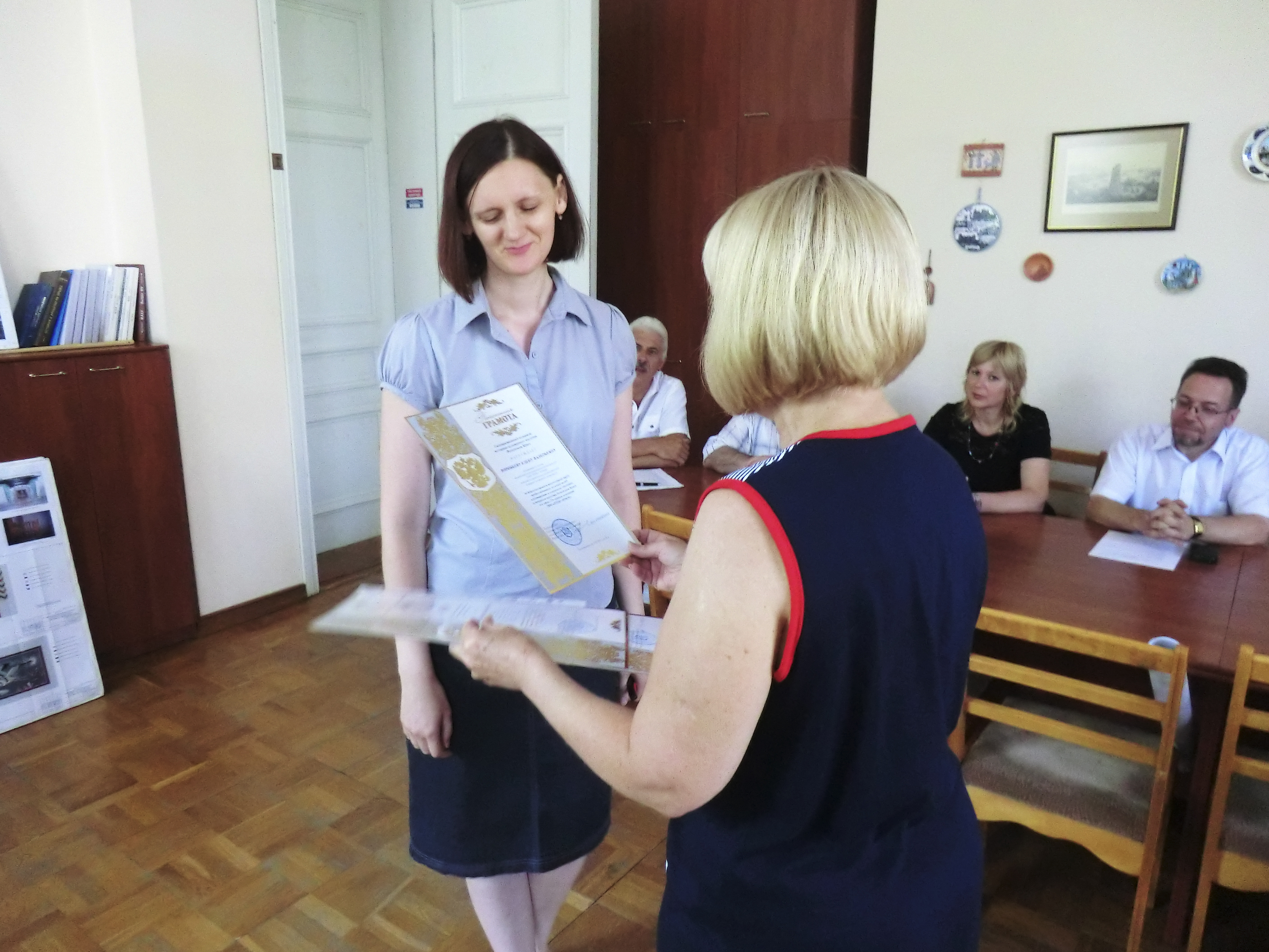 Пользуясь случаем, председатель Государственного комитета по охране культурного наследия Наталия Гриненко наградила Почетной Грамотой Госкомитета за высокий профессионализм, добросовестный труд, весомый вклад в реставрацию и сохранение объектов культурного наследия Республики Крым и в связи с 25-летием основания ООО «НТПО «КРЫМ» начальника архитектурно-реставрационной мастерской ООО «НТПО «КРЫМ» Елену Самонину, главного инженера ООО «НТПО «КРЫМ» Александра Рубеля и руководителя группы архитектурно-реставрационной мастерской ООО «НТПО «КРЫМ» Елену Воробьёву.